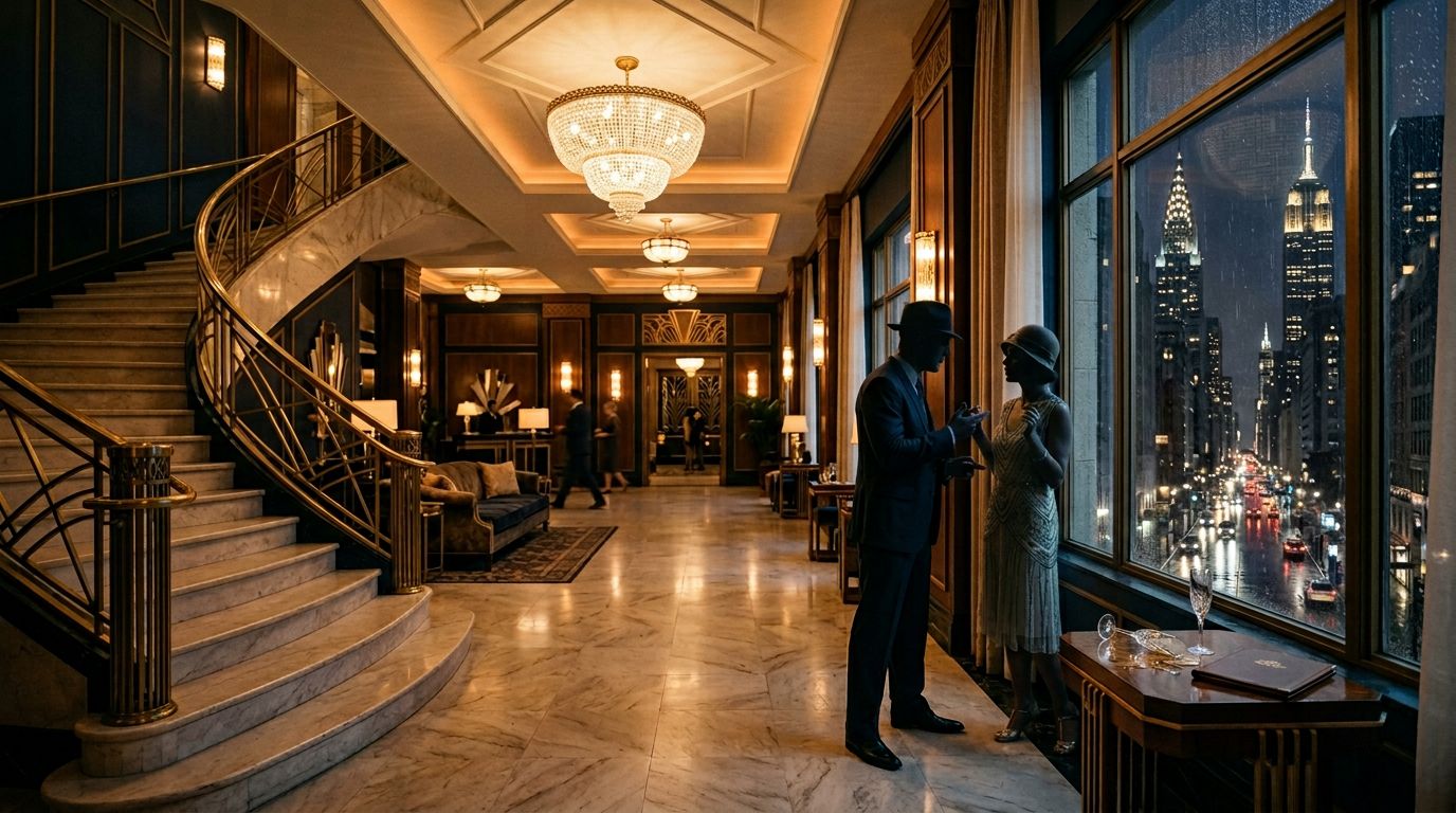 By the time everyone ends up at the Plaza Hotel, the story has already been simmering. Gatsby has stopped throwing parties because Daisy is finally in his orbit. Tom senses the shift and goes into full defensive mode. Nick watches it all, half fascinated, half horrified.
